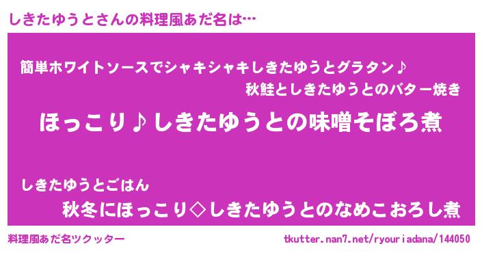 | 恥ずかしいあだ名 | 『プリティーしきたゆうと』『しきちん』 |