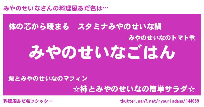 | 胡散臭い通販商品みたいなあだ名 | 『世界が平和になる高級そうな壺…その名も「みやのせいな」』 |