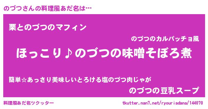 | 男性向けラノベタイトル風あだ名 | 『のづつの憂鬱』『はたらくのづつさま!』 |