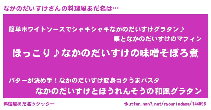 | 女子向けラノベタイトル風あだ名 | 『(仮)なかのだいすけのやんごとなき事情』 |