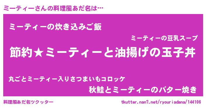 | 男性向けラノベタイトル風あだ名 | 『ミーティーアートオンライン』 |