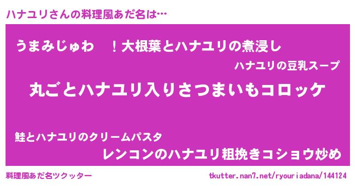 | 女子向けラノベタイトル風あだ名 | 『乙女ゲームの破滅フラグしかない悪役ハナユリに転生してしまった…』 |