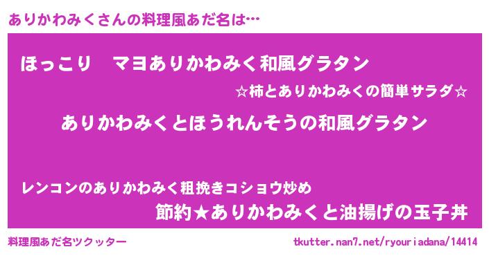 | 女子向けラノベタイトル風あだ名 | 『ありかわみくの玉の輿計画!』 |