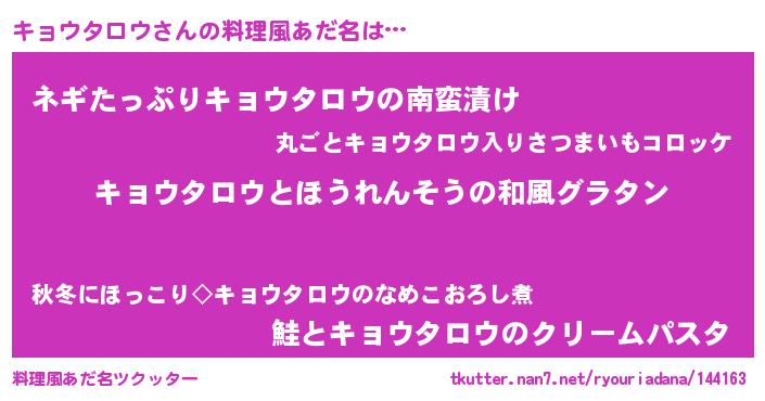 | ヒーロー風カッコイイあだ名 | 『スーパーキョウタロウ』『仮面キョダー』 |