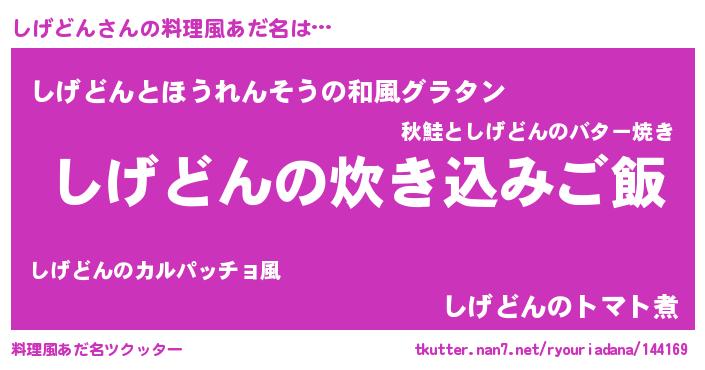 | 意味不明あだ名 | 『つくし科しげどん属』『自称しげどん』 |