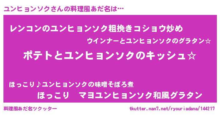| ヘコむあだ名 | 『ユンっ子』『牛乳』『ユンにゅー』 |