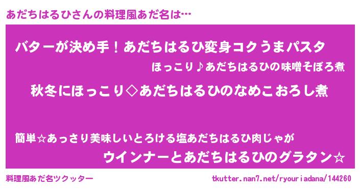 | 男性向けラノベタイトル風あだ名 | 『あだちはるひに滅ぼされるだけの簡単なお仕事です』 |