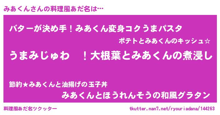 | 意味不明あだ名 | 『みあくんフォーエバー』 |