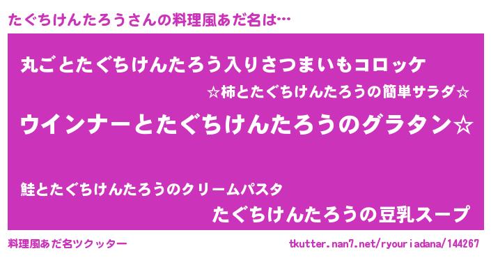 | 意味不明あだ名 | 『たぐちけんたろうフォーエバー』 |