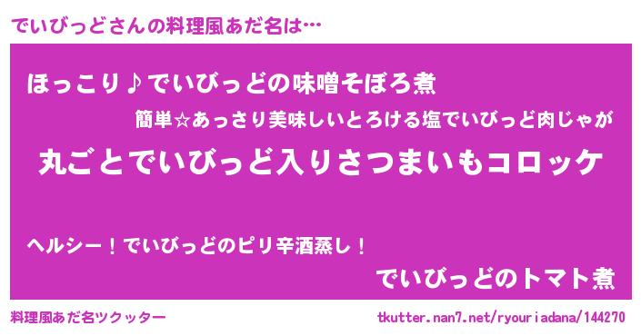 ヘコむあだ名 | 『でいっふぃ~』『でいびっど(笑)』 |