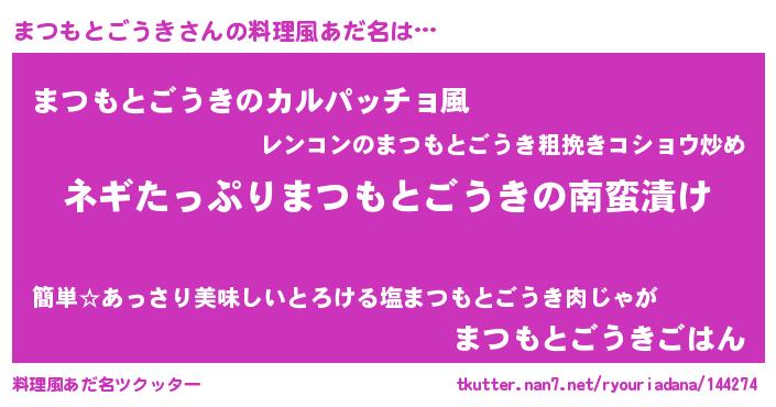 | ヘコむあだ名 | 『まつにゅー』『まつもとごうき(震え声)』 |