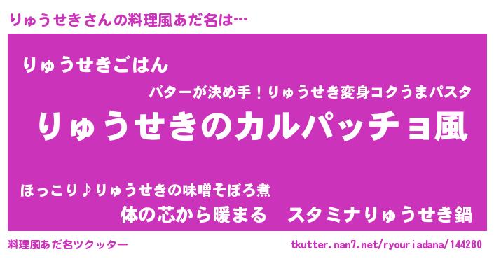 | 男性向けラノベタイトル風あだ名 | 『魔弾の王とりゅうせき』 |
