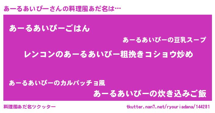 | 意味不明あだ名 | 『自称あーるあいぴー』 |
