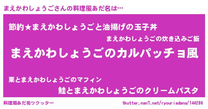 | 女子向けラノベタイトル風あだ名 | 『まえかわしょうごが死なない童話 林檎のまえかわしょうごの診療簿』 |
