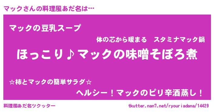 | 男性向けラノベタイトル風あだ名 | 『マックの憂鬱』『緋弾のマック』 |