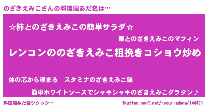 | 恥ずかしいあだ名 | 『ノザキエミコデラックス』『のざっちょ』 |