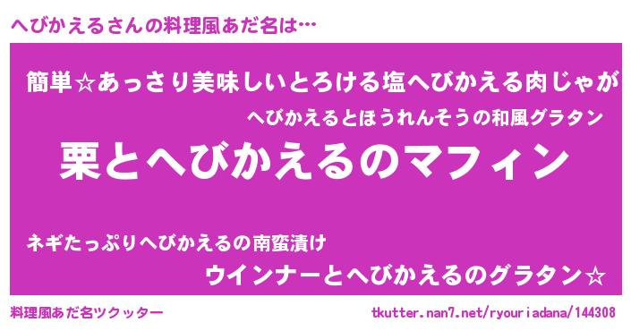 | 意味不明あだ名 | 『永久保存へびかえる』『自称へびかえる』 |