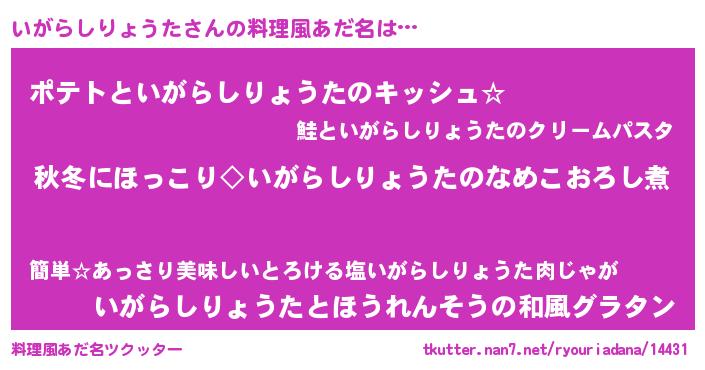 | ポケモン風あだ名 | 『イガゴンZ』『ヒイガラシリョウタ』 |
