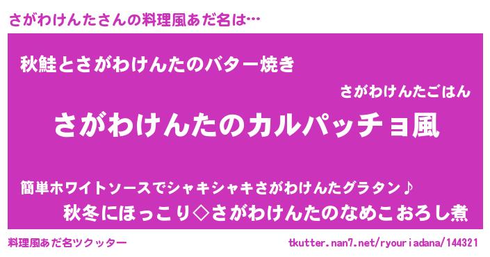 | 意味不明あだ名 | 『住所不定無職さがわけんた(98歳)』 |