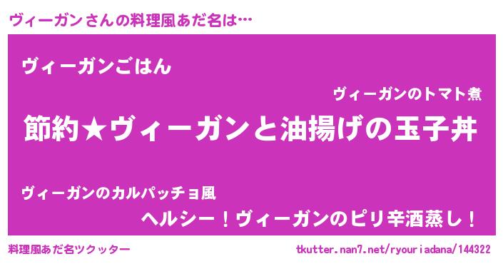 | 男性向けラノベタイトル風あだ名 | 『ヴィーガンアートオンライン』 |