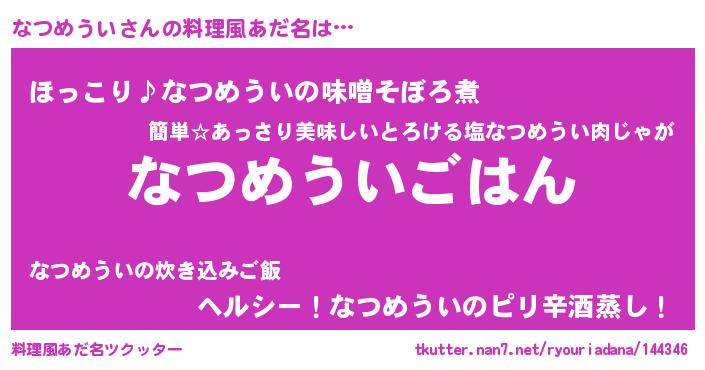 | 胡散臭い通販商品みたいなあだ名 | 『必ず成功するブレスレット…その名も「なつめうい」』 |