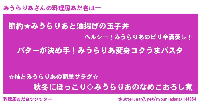 | ヒーロー風カッコイイあだ名 | 『愛の使者みうらりあ』『ネオミウラリア』 |
