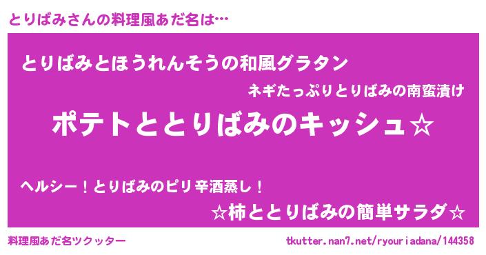 | 胡散臭い通販商品みたいなあだ名 | 『伝統あるサプリメント…その名も「とりばみ」』 |