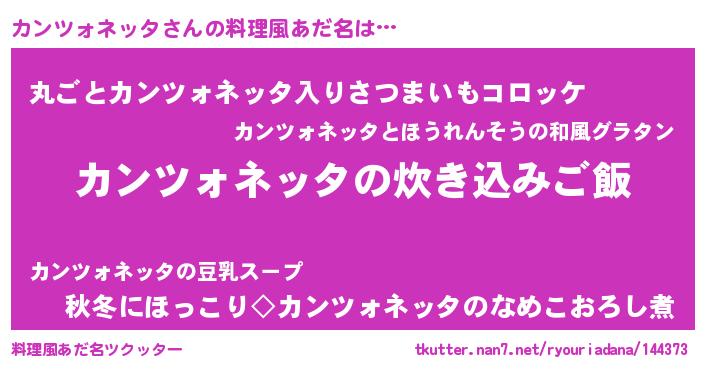 | 意味不明あだ名 | 『住所不定無職カンツォネッタ(95歳)』 |