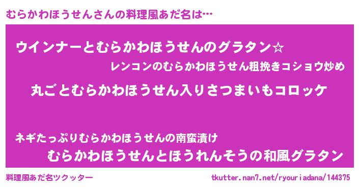 | 意味不明あだ名 | 『住所不定無職むらかわほうせん(12歳)』 |