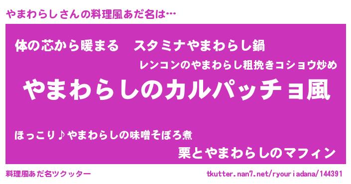 | 意味不明あだ名 | 『住所不定無職やまわらし(40歳)』 |