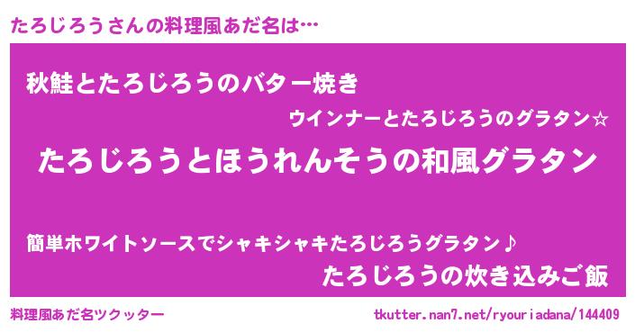| ヘコむあだ名 | 『たろじろう(震え声)』『なまこ酢』 |