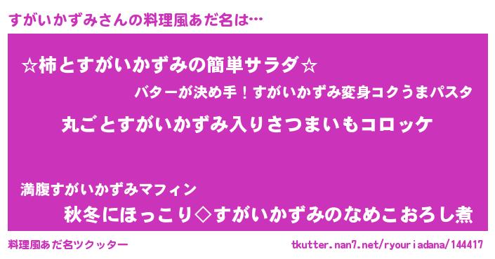 | ヘコむあだ名 | 『すがいかずみ(苦笑)』『なまこ酢』 |