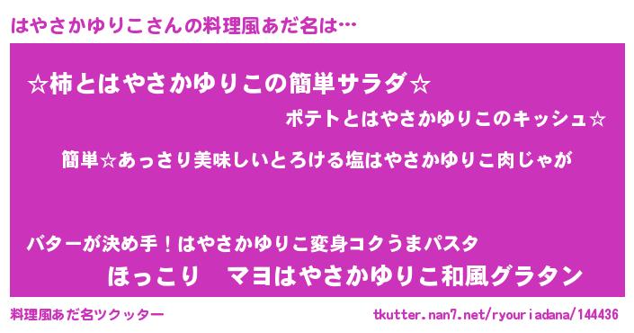 | ヘコむあだ名 | 『はやさかゆりこ(遠い目)』『はやぷりん』 |