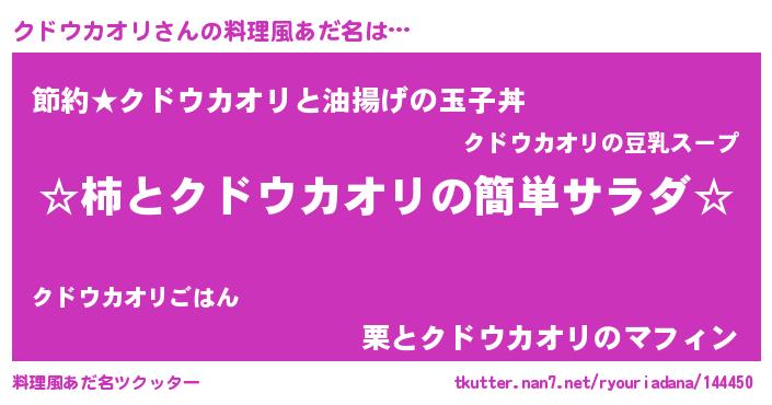| ピコ太郎風あだ名 | 『クコ三郎』『クド四郎』『クク太郎』 |