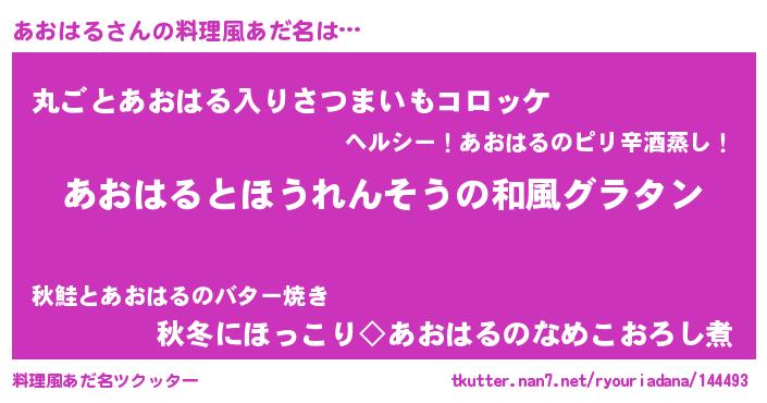 | ヘコむあだ名 | 『あおはる(小並感)』『なまこ酢』 |