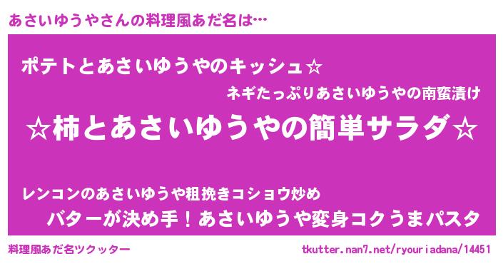 | ヒーロー風カッコイイあだ名 | 『魔戒騎士アサ』『スーパーアサイユウヤ』 |