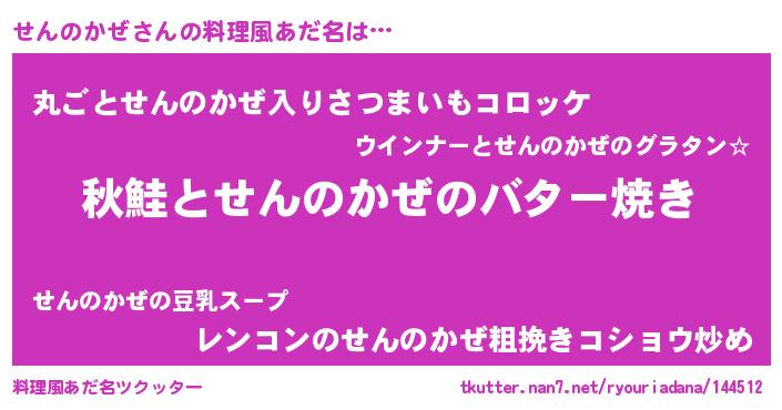 | 胡散臭い通販商品みたいなあだ名 | 『来世でも幸せになれる水素水…その名も「せんのかぜ」』 |