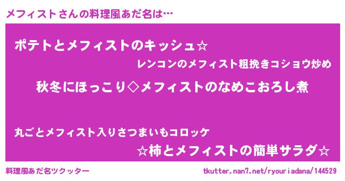 | 意味不明あだ名 | 『とにかく怪しいメフィスト』 |