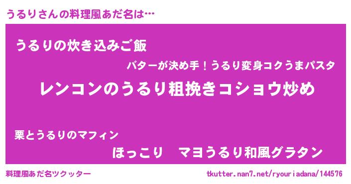 | 女子向けラノベタイトル風あだ名 | 『うるりなんてお断りですっ。』 |