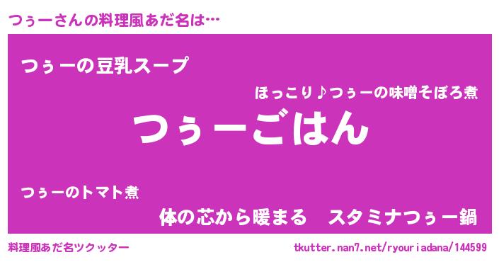 | 胡散臭い通販商品みたいなあだ名 | 『信頼と実績のサプリメント…その名も「つぅー」』 |