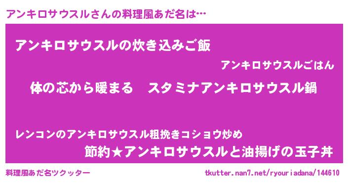 | 男性向けラノベタイトル風あだ名 | 『やはりアンキロサウスルの青春ラブコメはまちがっている 』 |