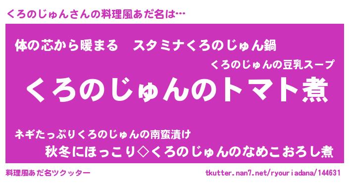| 男性向けラノベタイトル風あだ名 | 『おまえをオタクにしてやるから、俺をくろのじゅんにしてくれ! 』 |