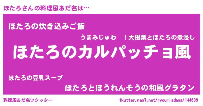 | 意味不明あだ名 | 『住所不定無職ほたろ(85歳)』 |