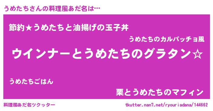 | ヒーロー風カッコイイあだ名 | 『ウルトラうめたちマン』『仮面ウメダー』 |