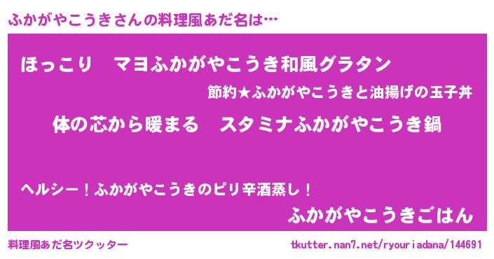 | 意味不明あだ名 | 『ふかがやこうきフォーエバー』 |