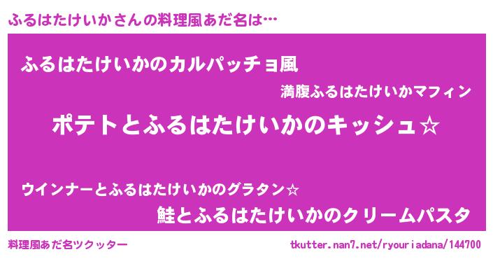 | ポケモン風あだ名 | 『ヒフルハタケイカ』『フールイ』 |