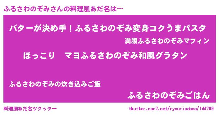 | 女子向けラノベタイトル風あだ名 | 『悪役ふるさわのぞみに転生したようですが、知った事ではありません』 |