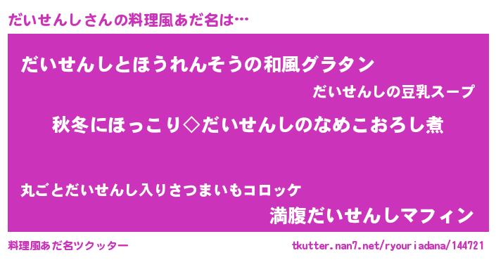 | ヘコむあだ名 | 『だいせんし(苦笑)』『だいを』 |