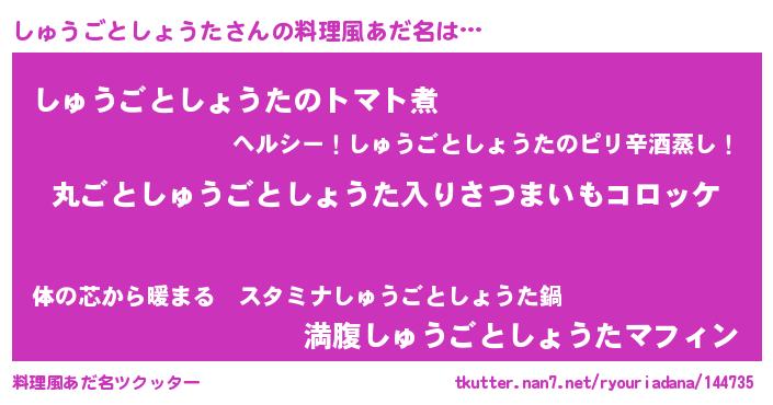 | 男性向けラノベタイトル風あだ名 | 『この素晴らしい世界にしゅうごとしょうたを!』 |