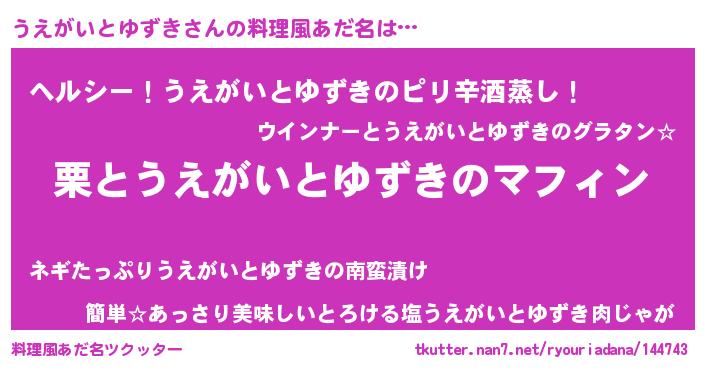 | ヘコむあだ名 | 『うえがいとゆずき(笑)』『酢こんぶ』 |